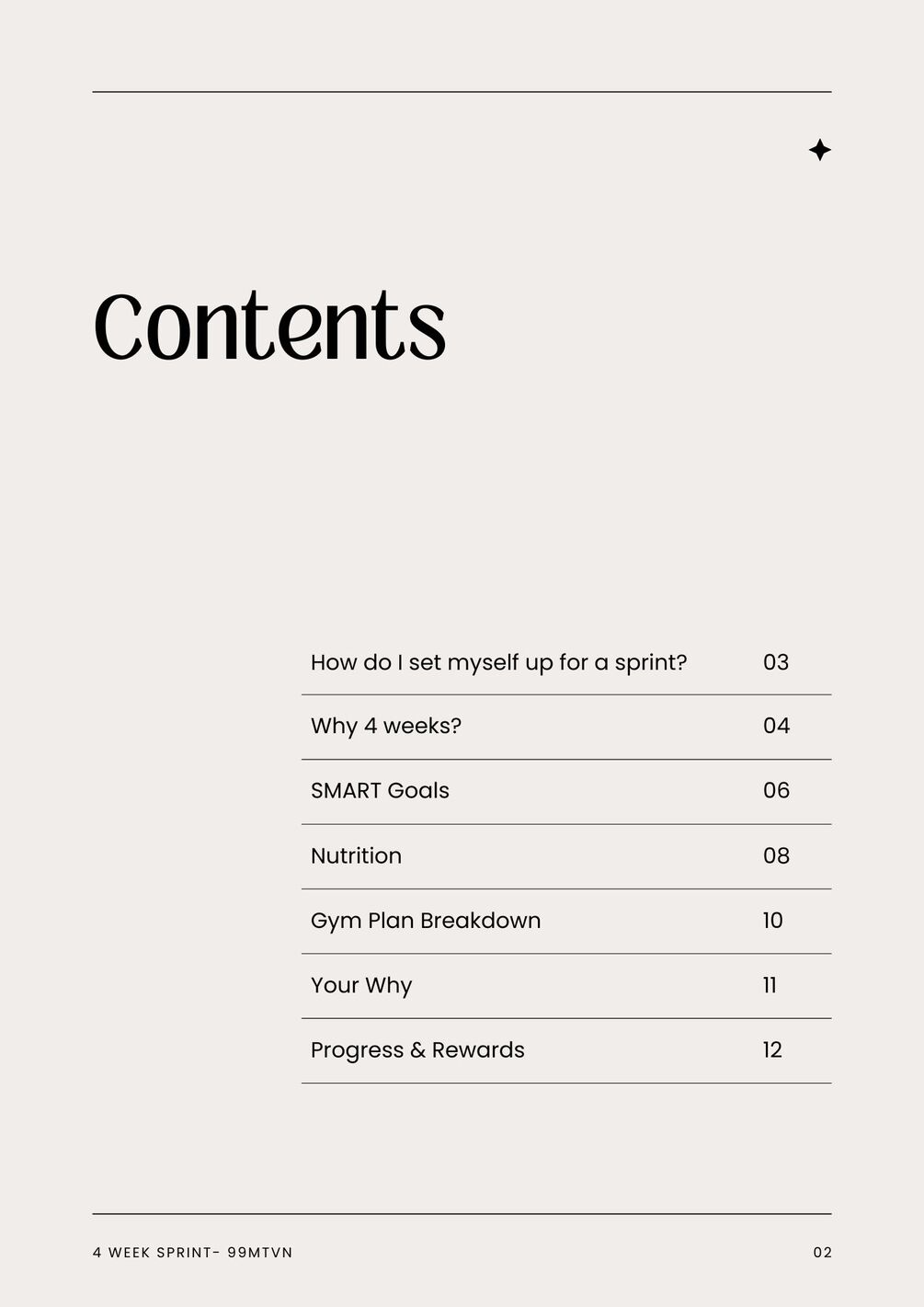 - Setting Up for a Sprint: Tips on preparing mentally and physically for your 4-week fitness journey.